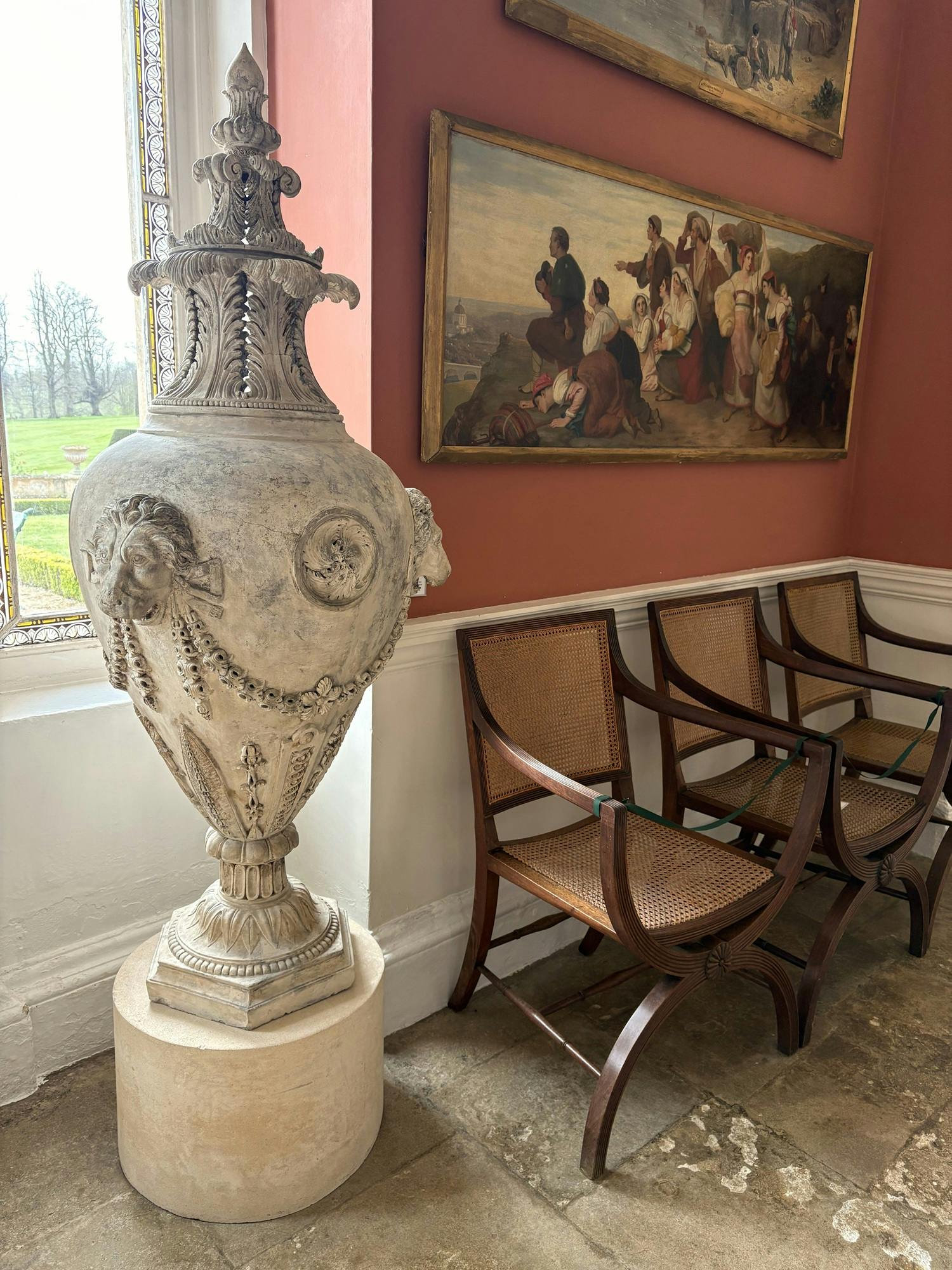 Our April object of the month stands right by the entrance doors to the Orangery and they have been a key part of the fabric of Bowood since the eighteenth century. This pair of Coade stone urns tell a story of architectural history and renewal, female business ingenuity, and bring together different parts of the estate in their movement across the centuries.